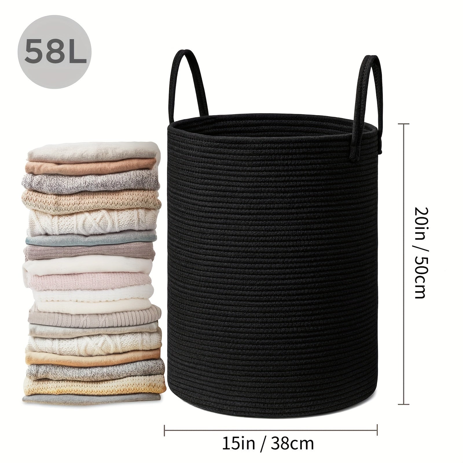 1pc Large Laundry Hamper Basket with Sturdy Handles - Extra Tall 38.1x50.8 cm, Heavy-Duty Storage Organizer with Open-Weave Design for Clothes,, Blankets - Modern Farmhouse Style in Black, Brown, Grey, Beige, White - Ideal fo